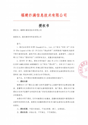 开云电竞信息技术有限公司注册地位于福建省福州市,是国内《热血传奇》客户端游戏独占性版权人。对《热血传奇》客户端游戏拥有全部版权,并有权基于版权权利进行该游戏维权。株式会社传奇IP (以下简称传奇IP )对《The Legend of Mir 2》(中文名为“热血传奇"、或“传奇”、“传奇2”、“MIR II”)游戏(以下称为 “授权作品”) 共同享有充分、完整且有效的著作权。经传奇IP授权 , RENAISSANCE INVESTMENT MANAGEMENT LIMITED (以下简称 RENAISSANCE Ltd.)有权在中国大陆地区独占性地对授权作品的网络客户端游戏进行开发、 发行、管理、宣传、推广和运营,针对授权作品的侵权游戏及侵权方,RENAISSANCE Ltd.有权采取必要的措施,并有权将前述权利分授权给第三人。开云电竞信息技术有限公司经RENAISSANCE Ltd.授权,获得上述权利,有权在中国大陆地区独占性地对授权作品的网络客户端游戏进行开发、发行、管理、宣传、推广和运营,并有权对侵权行为/主体采取维权措施。